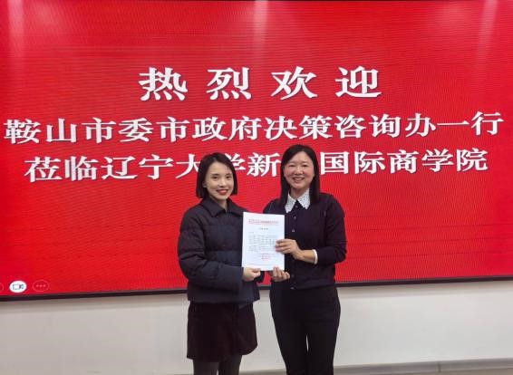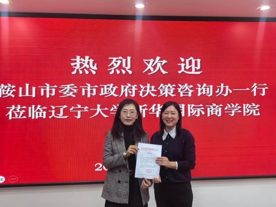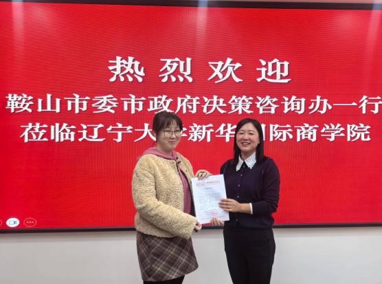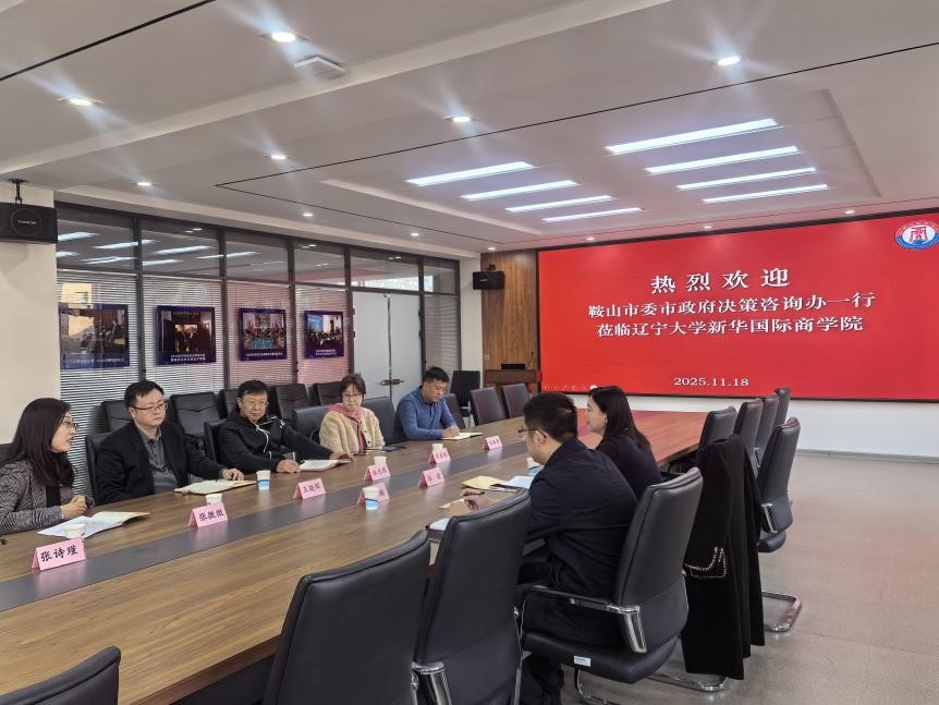 近日,中共鞍山市委政研室副主任孙毅、科长刘津麟一行到访我院,双方围绕深化校地合作、共促优势互补、重点项目攻关等开展座谈。新华国际商学院党委书记杨志鹏、院长王晓辉及学院教师代表参加座谈交流。会议由学院教师张微微主持。