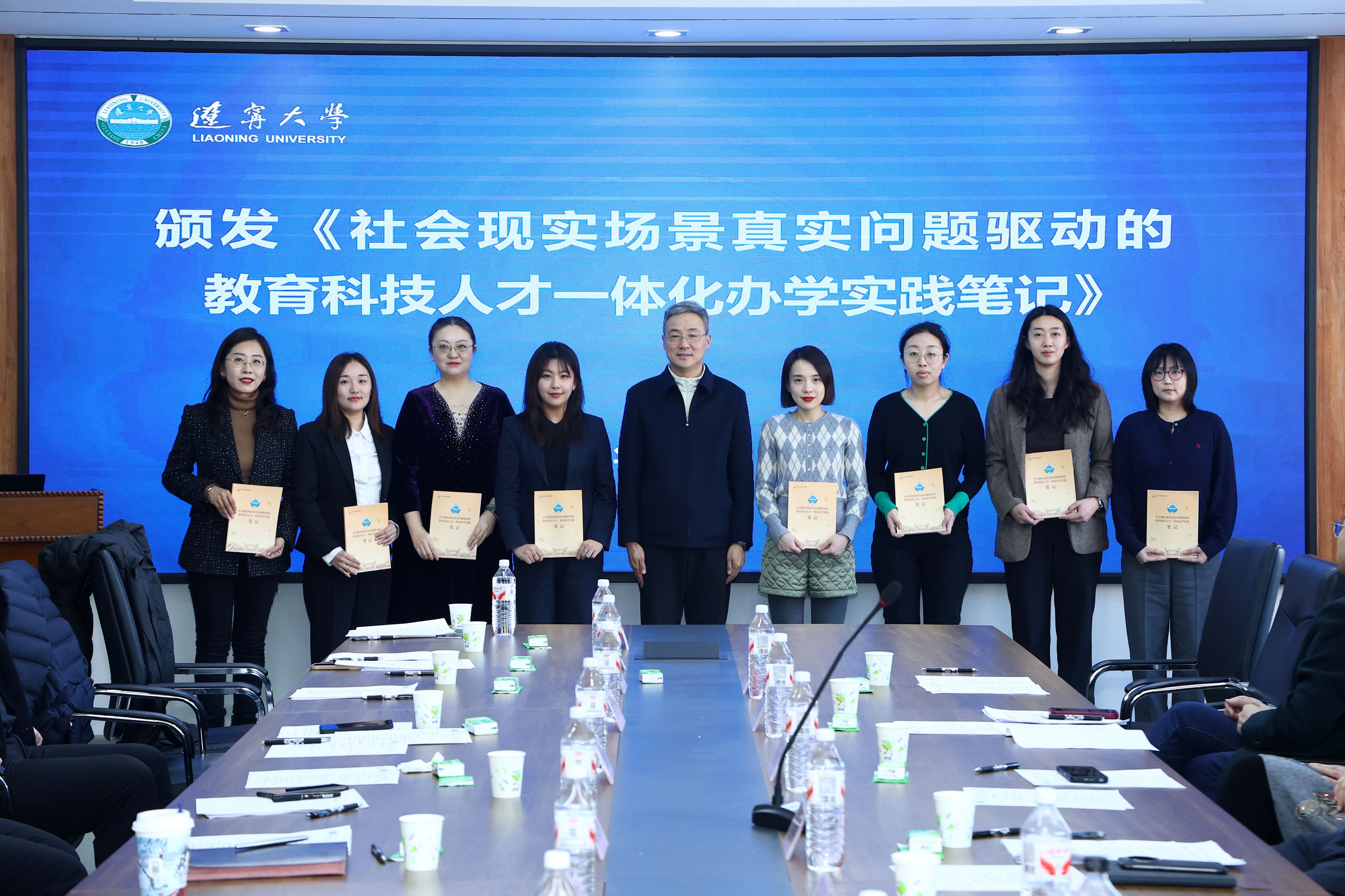 会上,霍春辉为新华国际商学院师生代表颁发《社会现实场景真实问题驱动的教育科技人才一体化办学实践笔记》。