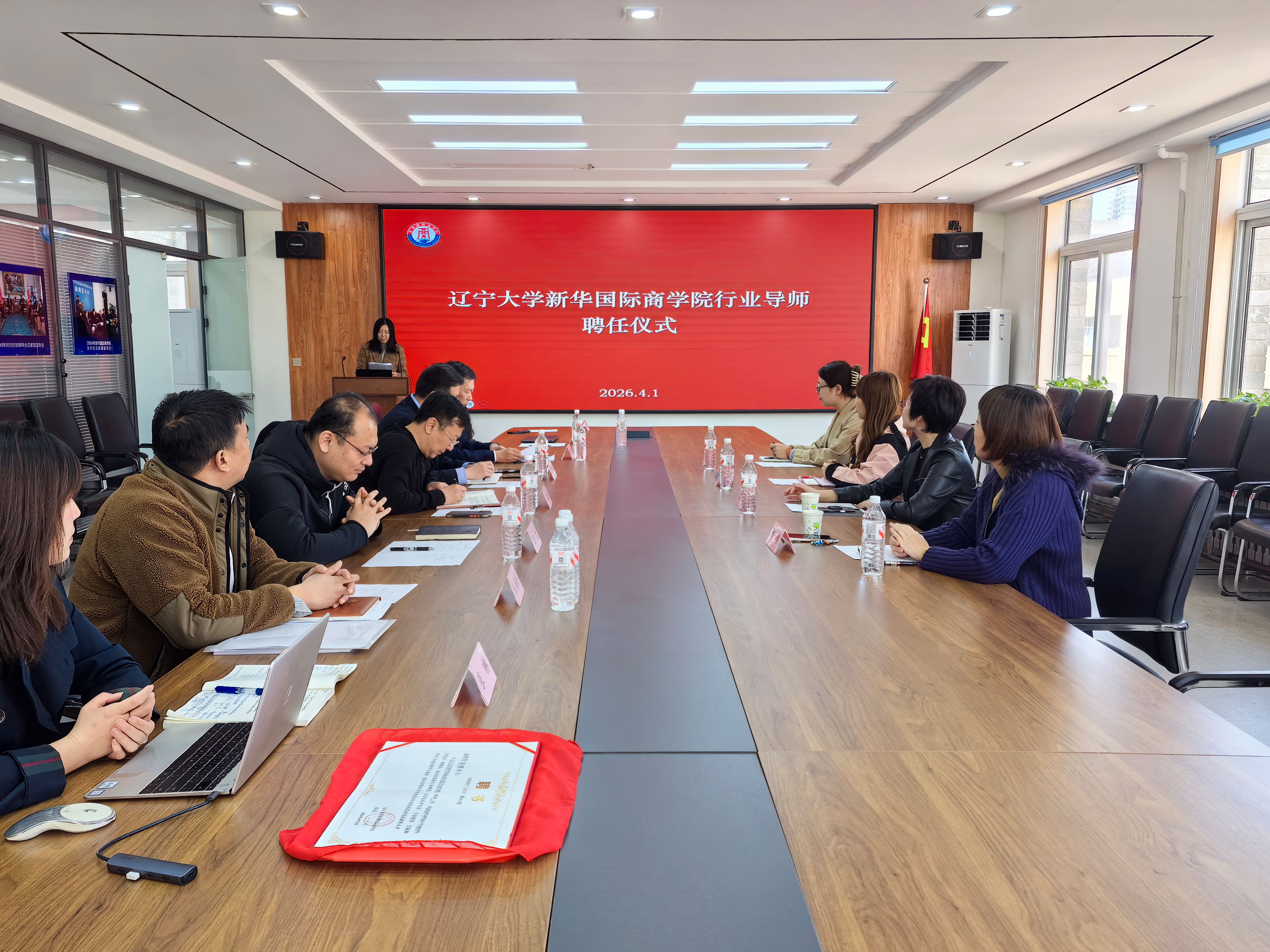 2026年4月1日,辽宁大学新华国际商学院行业导师聘任仪式在蒲河校区则行楼305会议室举行。香港新华集团东北区代表宋娜女士一行三人,学院班子成员及教师代表共同出席仪式。聘任仪式由学院案例中心主任孟佳佳主持。