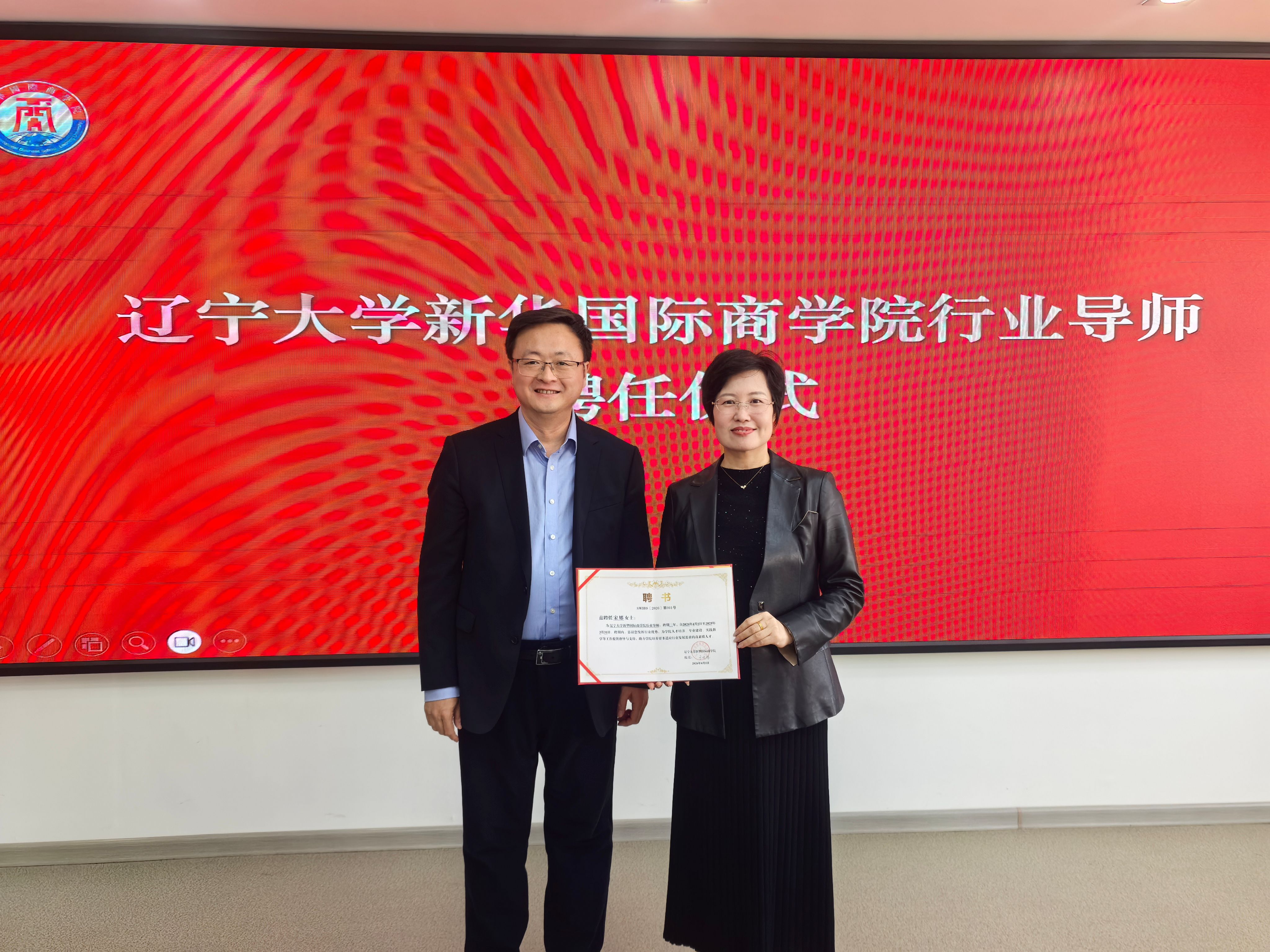 会上,王晓辉院长对新华集团一行的到来表示热烈欢迎,介绍了学院发展建设、人才培养及行业导师队伍建设情况,并为宋娜女士颁发辽宁大学新华国际商学院行业导师聘书。他表示,学院始终高度重视实践教学与行业资源的深度融合,聘请优秀行业导师是学院深化教育教学改革、强化实践育人环节的重要举措。希望以此次聘任为契机,进一步加强与行业领军企业、资深专家的深度合作,推动优质产业资源转化为教学资源和实践资源,持续提升学生的专业素养、创新能力与职业发展能力。